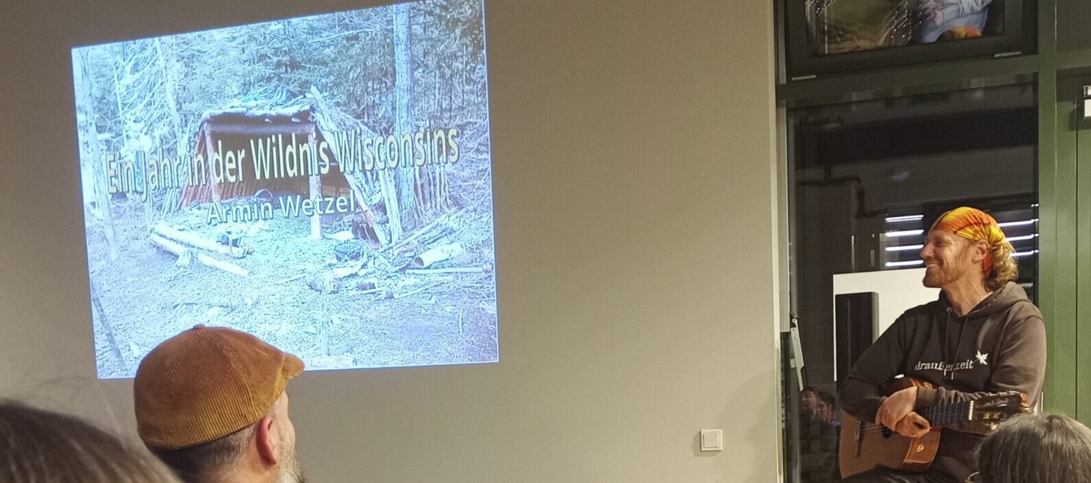 Einen beeindruckenden Vortrag über sein Jahr in den Wäldern Wisconsins, in dem er nicht nur der Natur und den Menschen, die dieses Abenteuer mit ihm teilten, sondern auch sich selbst näher kam, hält Armin Wetzel von draußenzeit e.V.